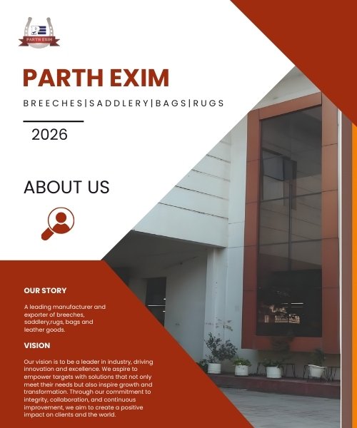 Parth Exim is a leading manufacturer and exporter with over 20 years of industry experience, specializing in quality equestrian and leather goods. Our product range includes breeches, saddlery, rugs, bags, belts, wallets, and custom-made leather accessories.